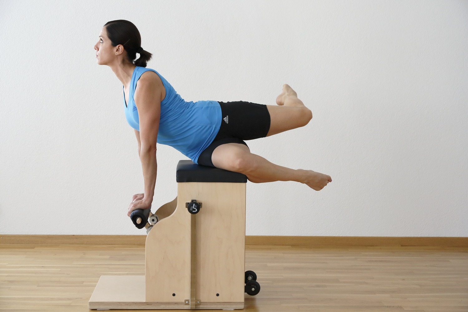 Der Chair sollte klein und portabel sein. Denn Joseph Pilates wünschte sich, dass jeder den Wunda Chair (wunderhaften Stuhl) zuhause stehen haben sollte für ein schnelles Workout. Auf dem Chair ist ein komplettes Ganzkörper-Übungsprogramm möglich. Herausfordernd, variantenreich und platzsparend – so kann man den Chair beschreiben. Besonders faszinierend: in vielen Übungen auf dem Chair findet nur ein kleiner Teil des Körpers (Platz für) eine feste Auflagefläche: umfangreiche Anstrengungen für die Tiefenmuskulatur sind damit quasi garantiert. (Text: Deutscher Pilates-Verband)